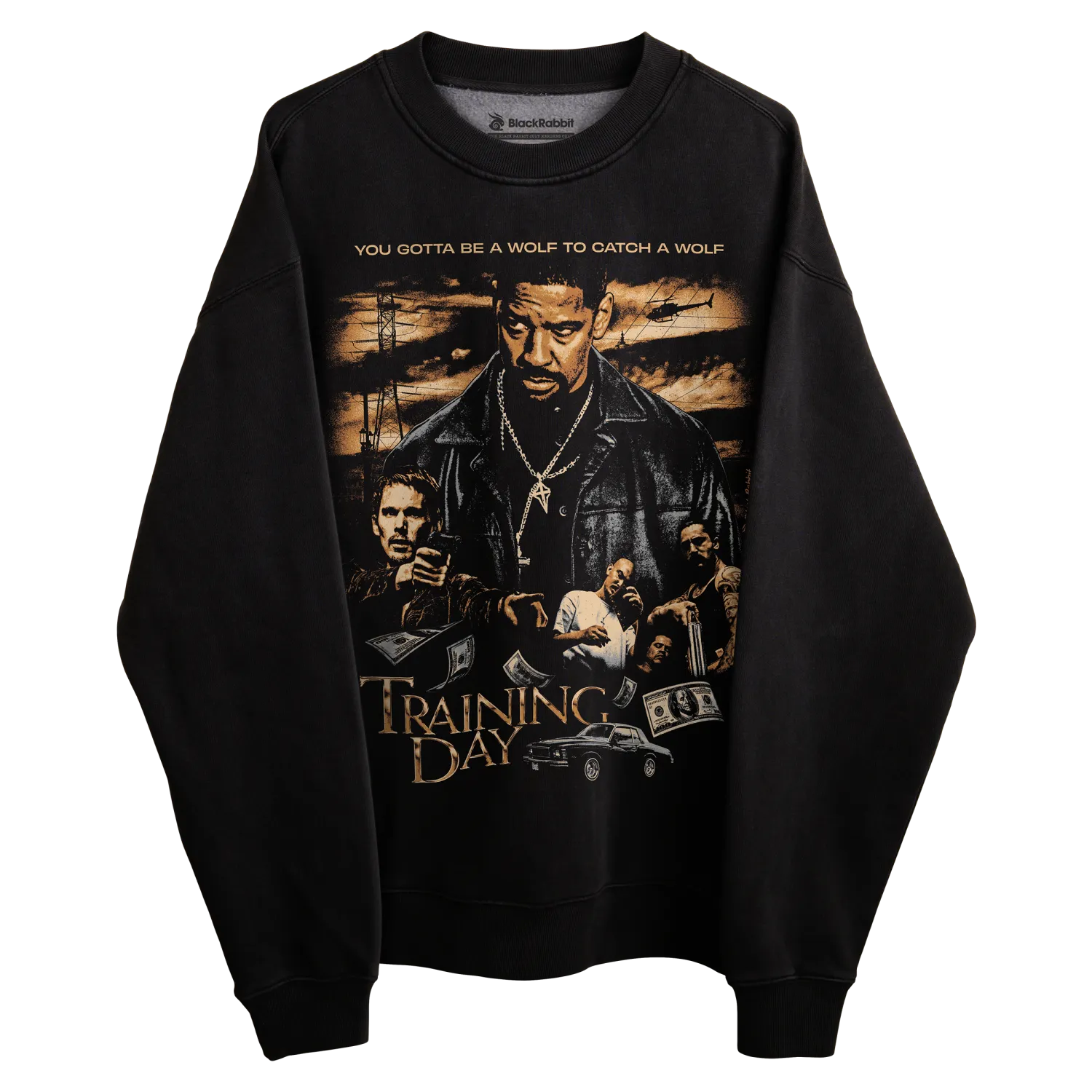 Celebrate the cult classic 2001 dirty cop movie Training Day with this retro 2000s Training Day T-Shirt featuring Denzel Washington and Ethan Hawke! Training Day - You Gotta Be A Wolf To Catch A Wolf