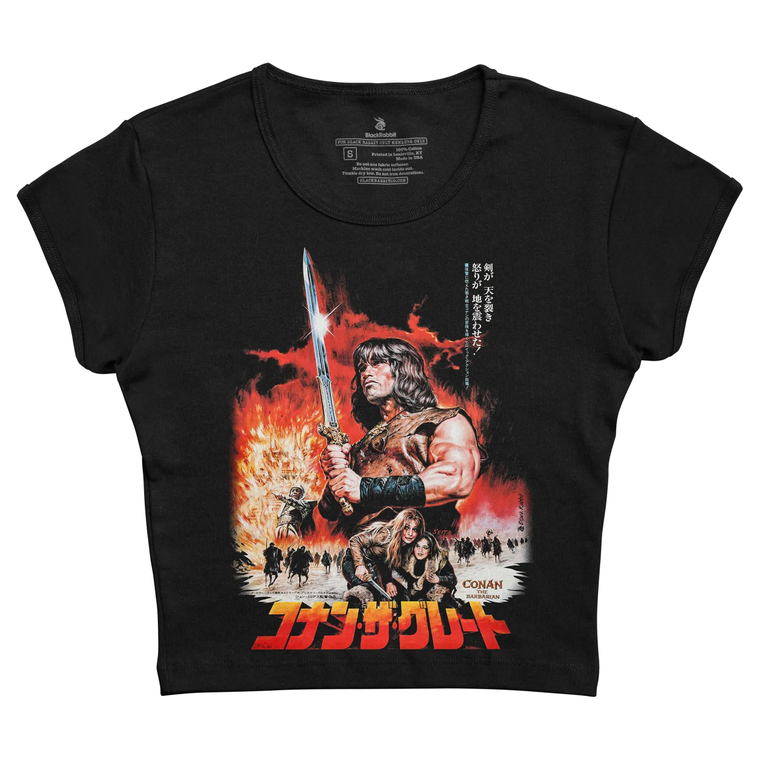 Celebrate the legendary classic Arnold Schwarzenegger Fantasy Action Adventure film with this Retro Vintage Conan The Barbarian T-shirt based on the Japanese Poster Art!
