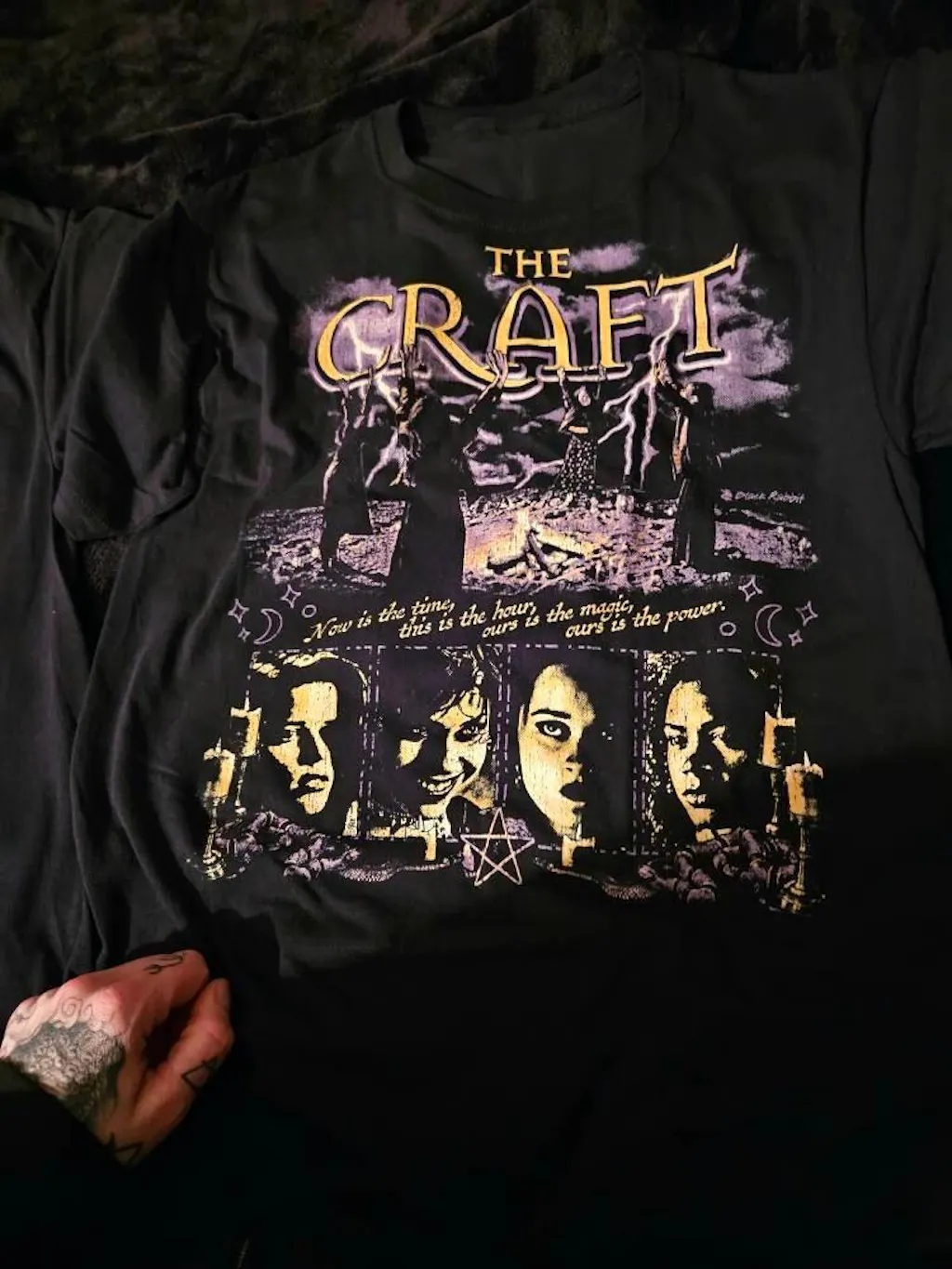 Celebrate the 90s cult classic supernatural teen horror film with this The Craft T-Shirt featuring the entire 4-girl Air, Water, Earth, & Fire Coven!