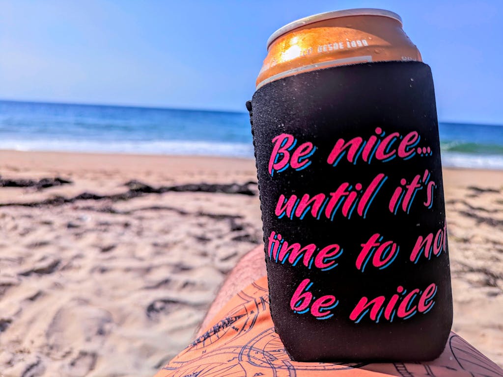Kick back and keep your drinks ice-cold with this Premium Neoprene Double-Sided Double Deuce Can Insulated Can Cooler! Inspired by the legendary bar from the cult classic Road House, this retro 80s-style can cooler features two iconic designs—the Double Deuce logo on the front and the legendary quote "Be nice… until it’s time to not be nice" on the back. A must-have for movie buffs, Patrick Swayze fans, and lovers of dive bar nostalgia!