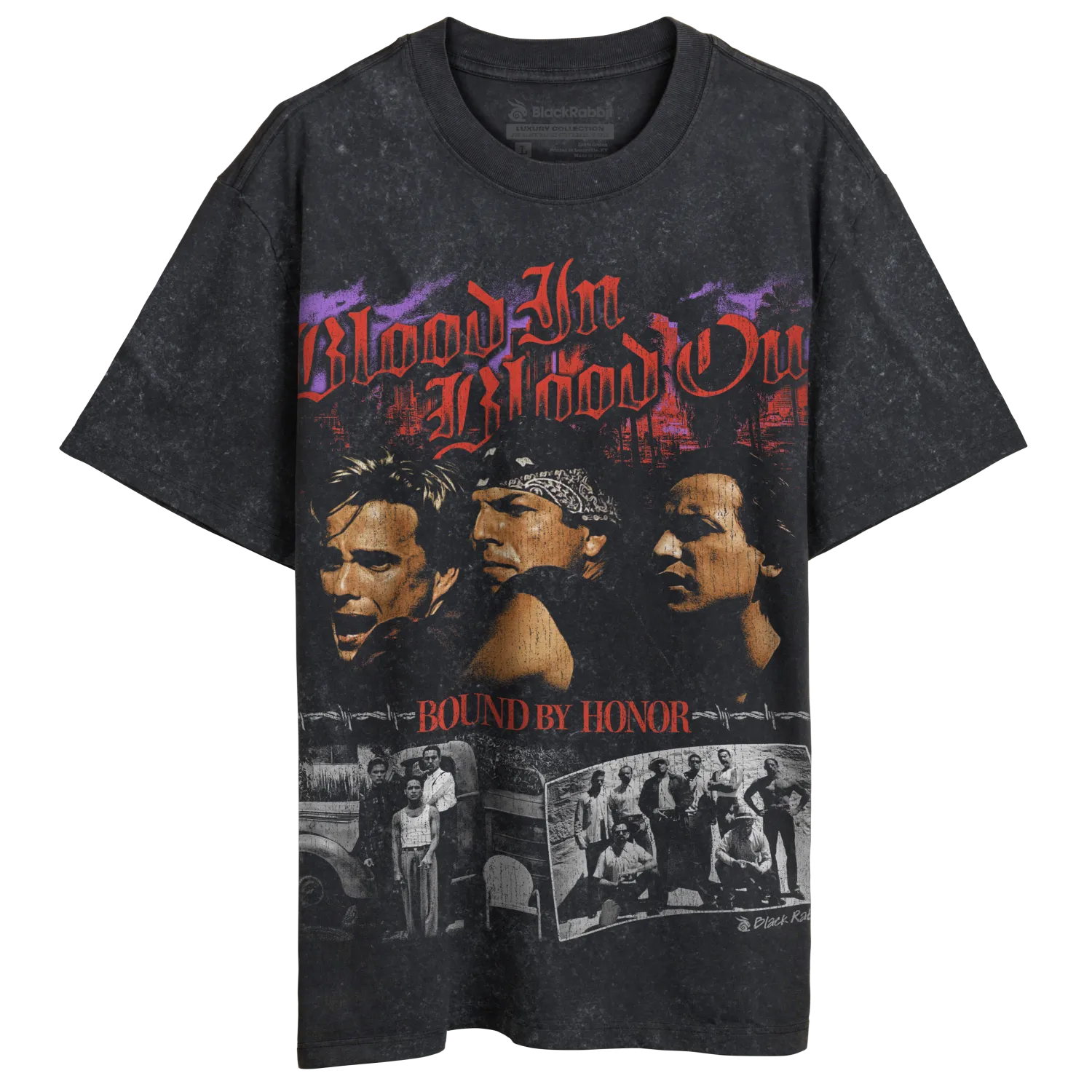 Celebrate the cult classic action 90s crime drama Blood In Blood Out with this retro 90s T-Shirt featuring the full cast. Blood In Blood Out - Bound By Honor!
