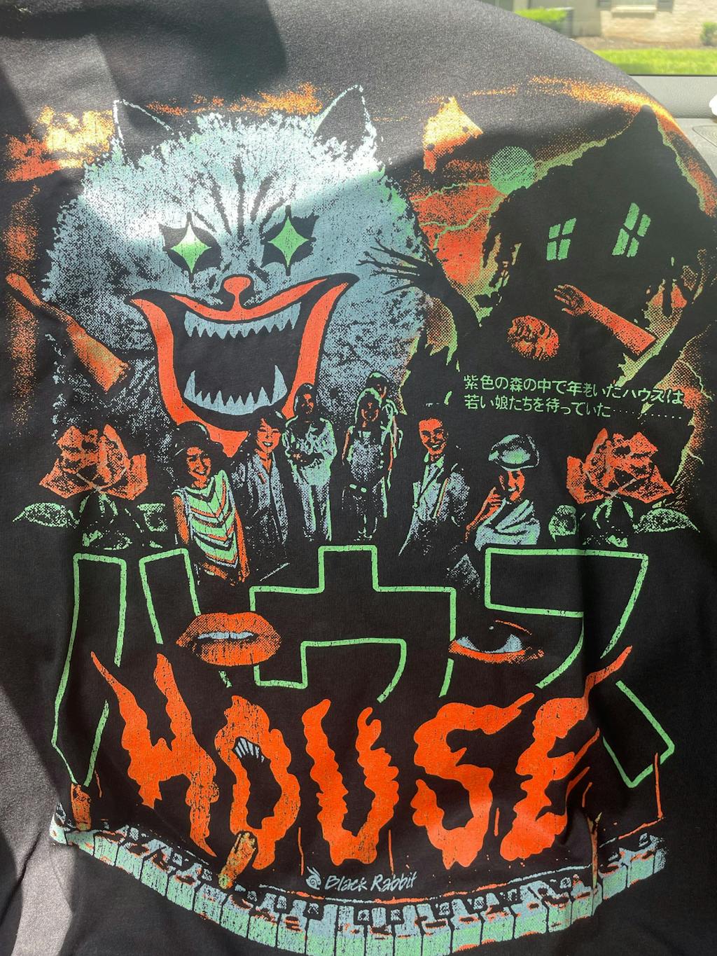 So glad somebody's making shirts for this, I've seen a few accounts from people having ハウス shirts recognized and two people would briefly bond over a bizarre cult 70s horror comedy thing 😂
